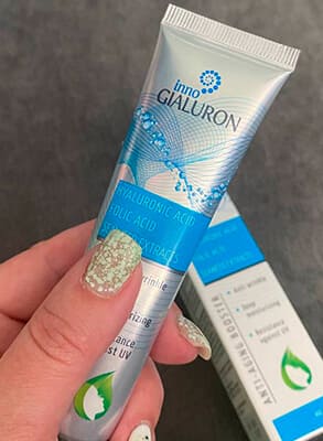 استخدمي سيروم Inno Gialuron المضاد لتقدم سن البشرة بدلا من مستحضرات التجميل الأخرى للعناية بالوجه.