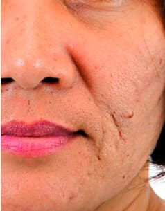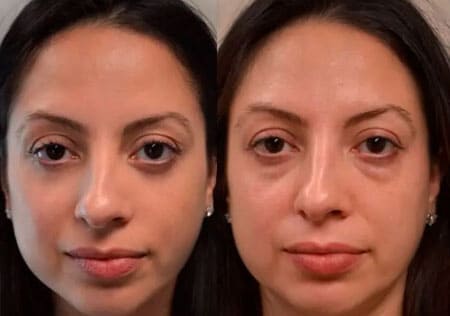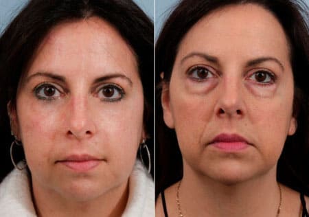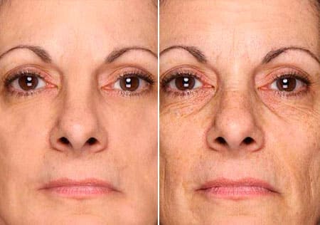 نتائج ملحوظة: تم التخلص من التجَاعِيد تماما، ملامح الوجه واضحة ومشدودة، الجلد متألق بمظهر شاب وجميل.